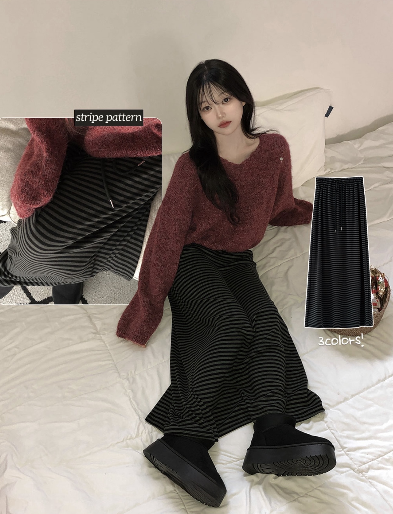 根據製作時間不同,彈力、針織、豎紋編織&壓花面料商品最多會有1~3cm的差異。